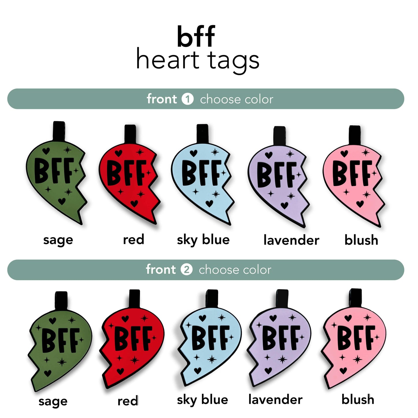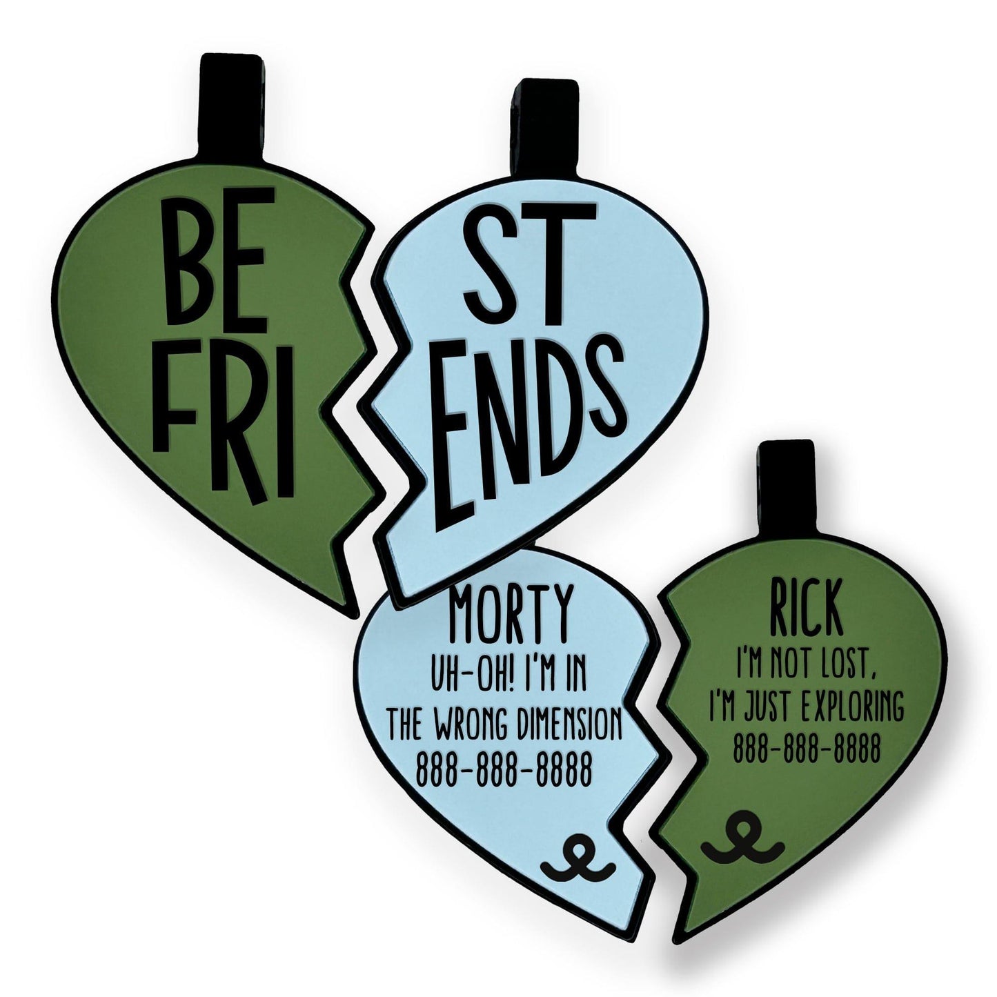 Our Best Friend Forever Pet Tags Collection is designed for the inseparable duo! From classic heart-shaped tags that fit together to playful designs like PB & J, these matching ID tags celebrate the unbreakable bond between pets and their best friends – whether that's you or their furry buddy.