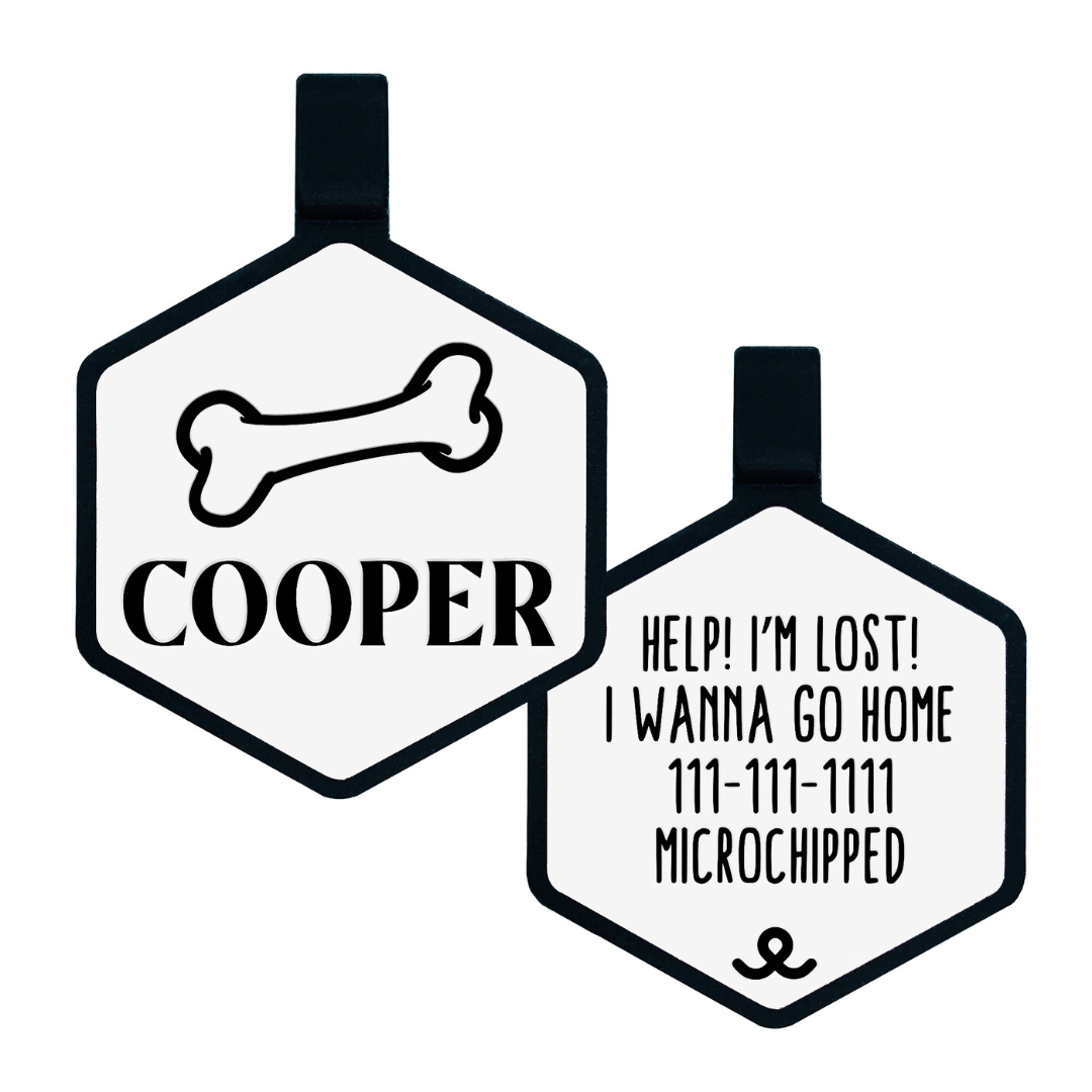 Customize the front with your pets name and add your emergency contact information on the back.