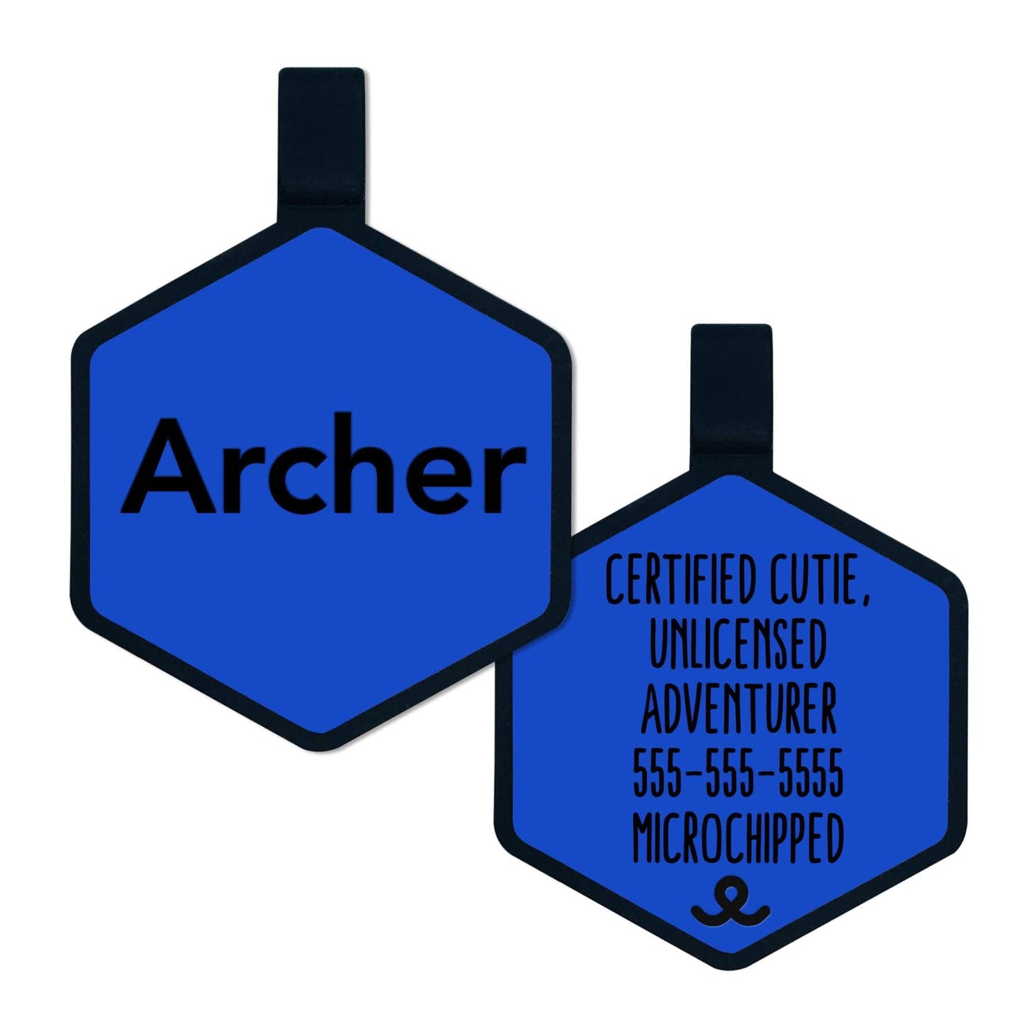 This classic dog tag pairs a modern geometric shape with a vibrant blue color.