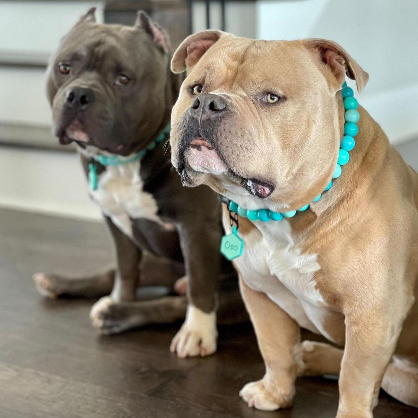 This classic dog tag pairs a modern geometric shape with vibrant shades of aqua, inspired by the caribbean ocean.