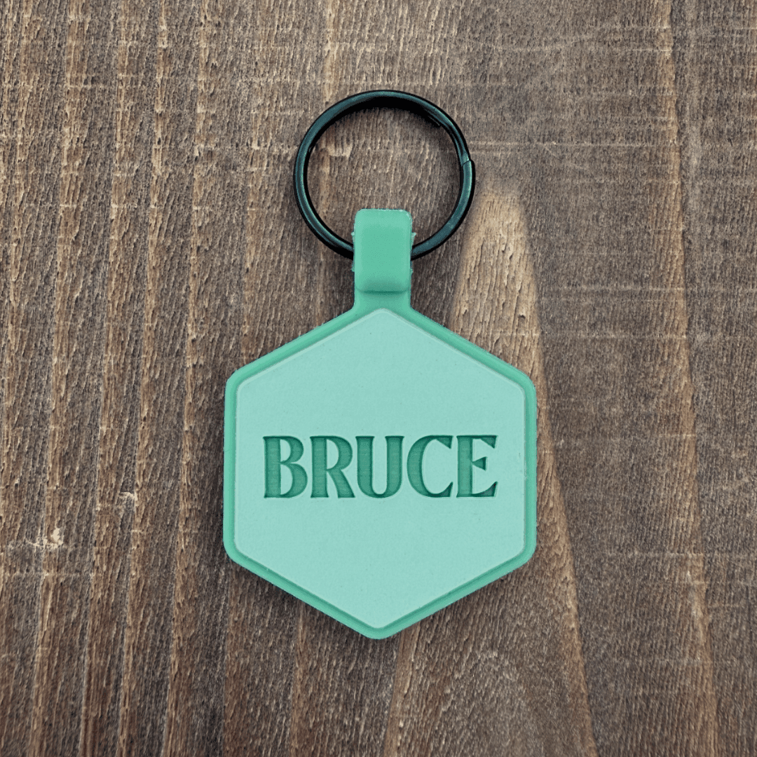 This classic dog tag pairs a modern geometric shape with a soft, nature-inspired green color.