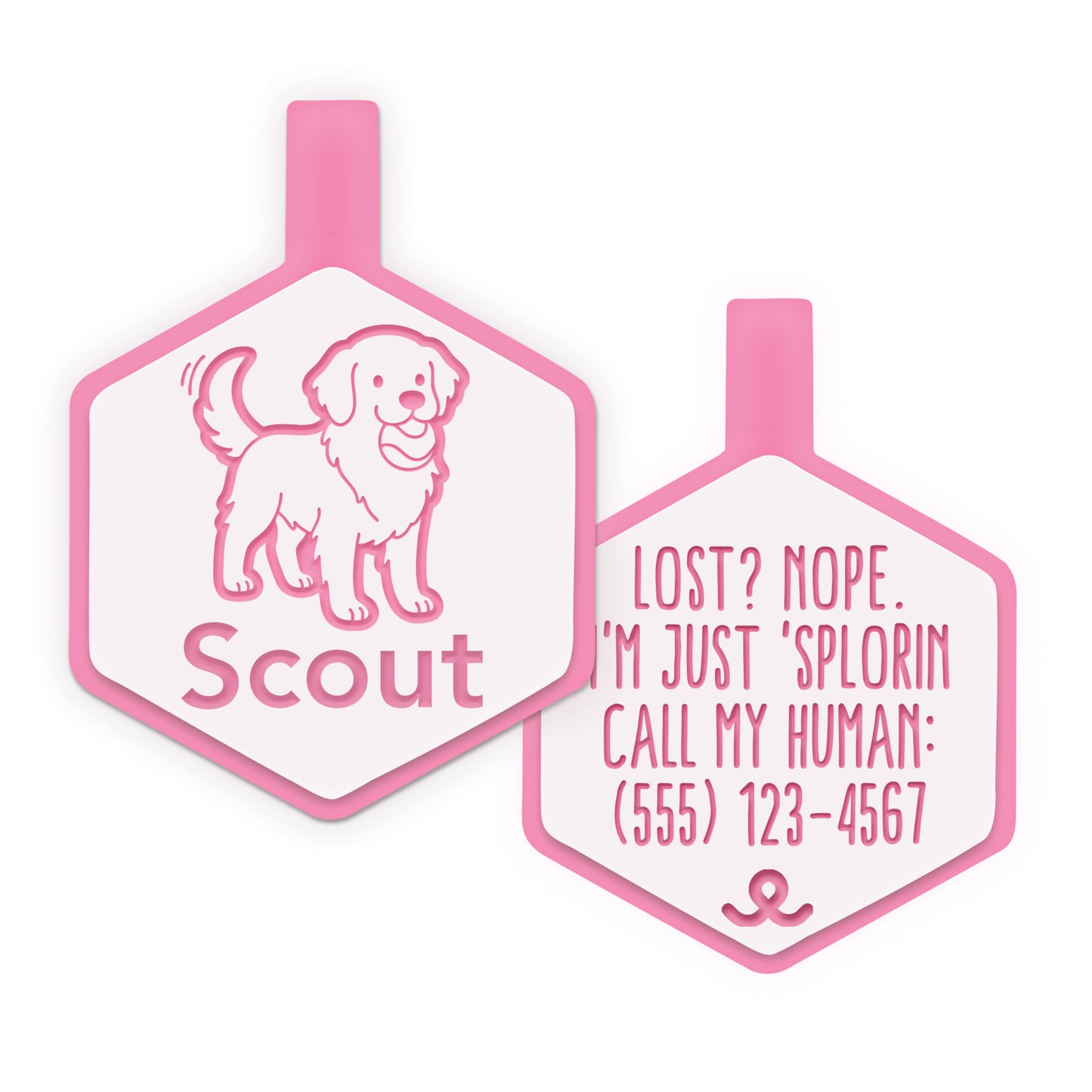 Golden Retrievers are sunshine in dog form—loyal, gentle, and always happy to see you. Our Golden designs are a love letter to those golden hearts, with custom illustrations that capture their sweet smiles, fluffy ears, and endlessly wagging tails. Whether they’re chasing tennis balls or snuggling on the couch, these tags were made for the goodest boys and girls.