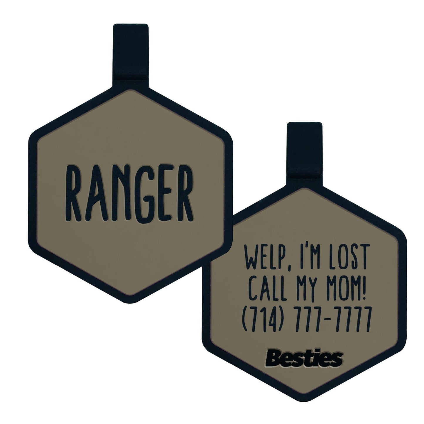 Every Besties Pets identification tag is made of 100% silicone, affixed with a .75" shiny black split ring to secure your tag to any pet collar. Our tags are durable, waterproof, easy to clean, and fade-proof which means you and your bestie can be confident that this tag will last through any excursion, dogpile, or catfight. Oh… and what’s that noise you ask? That, my friend, is the sweet sound of silence.