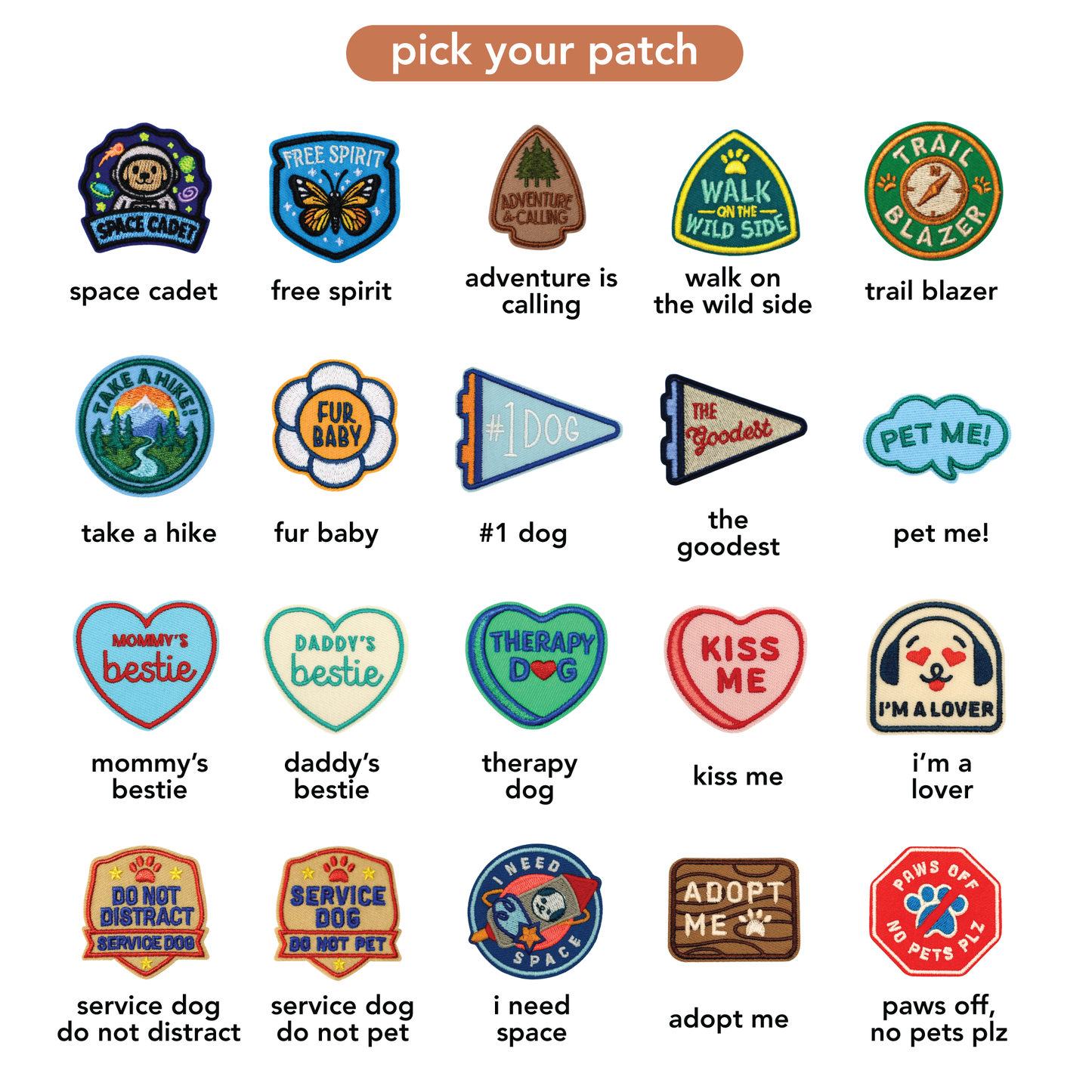🐾 Optional patches (28 designs!) for a unique touch