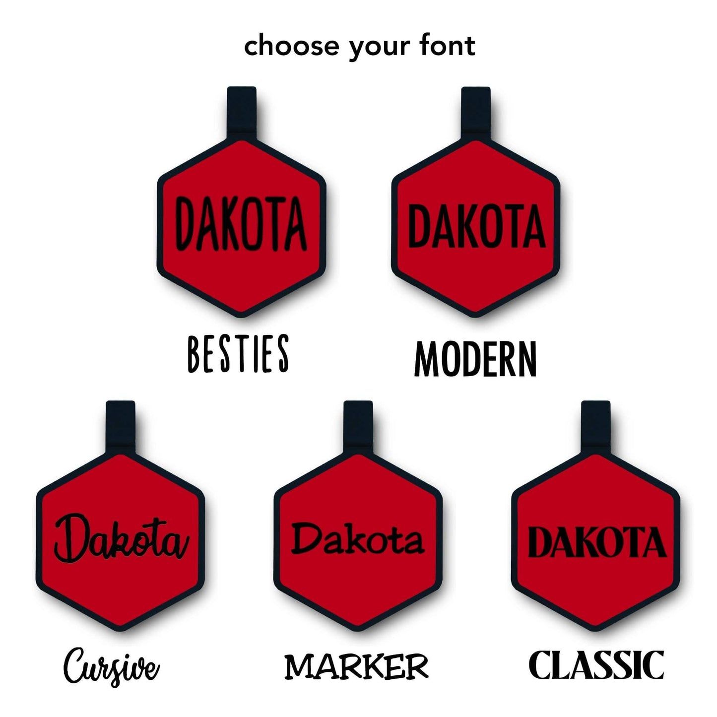 Customize the front with your pet's name. We add a QR code with a link to your pet's emergency profile on the back.