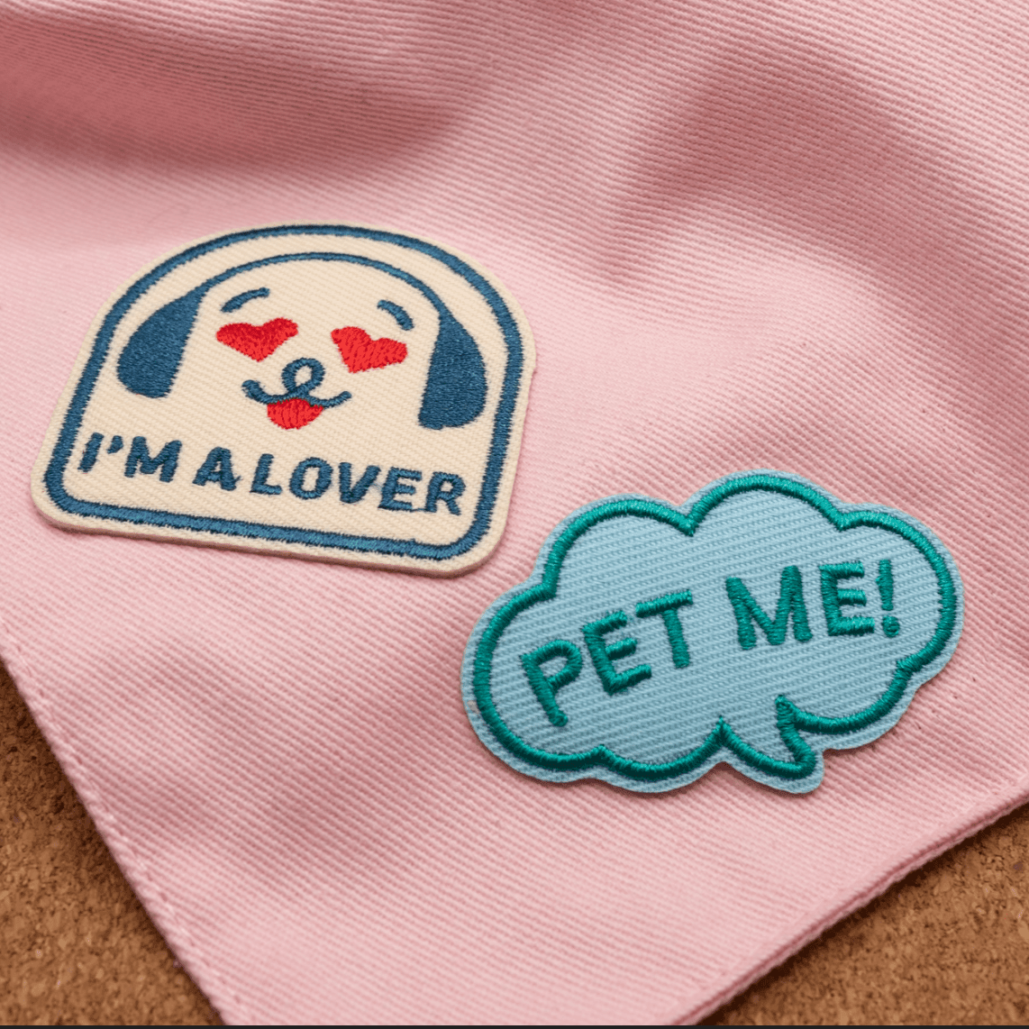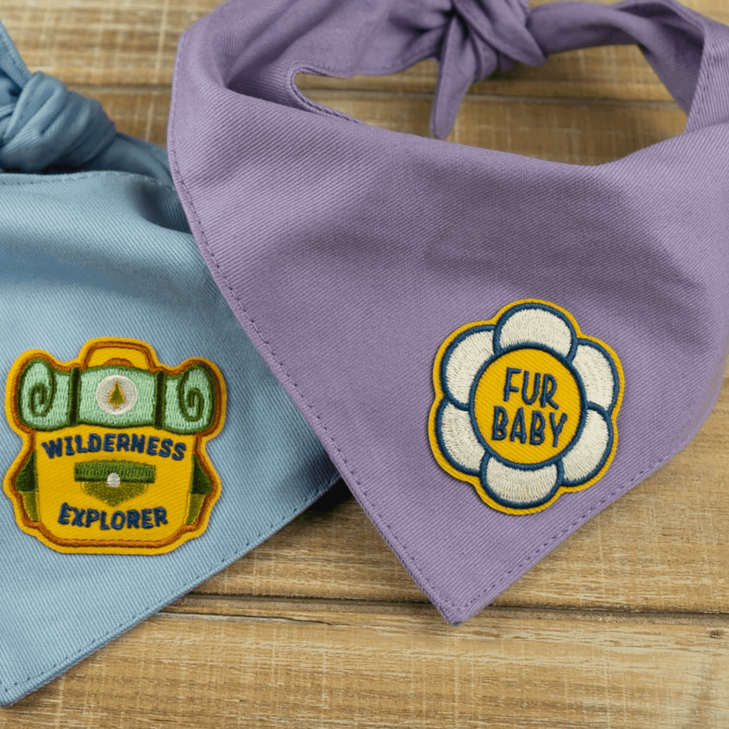 High-quality embroidered patches add personality to dog bandanas, hats, jackets, backpacks, and more.